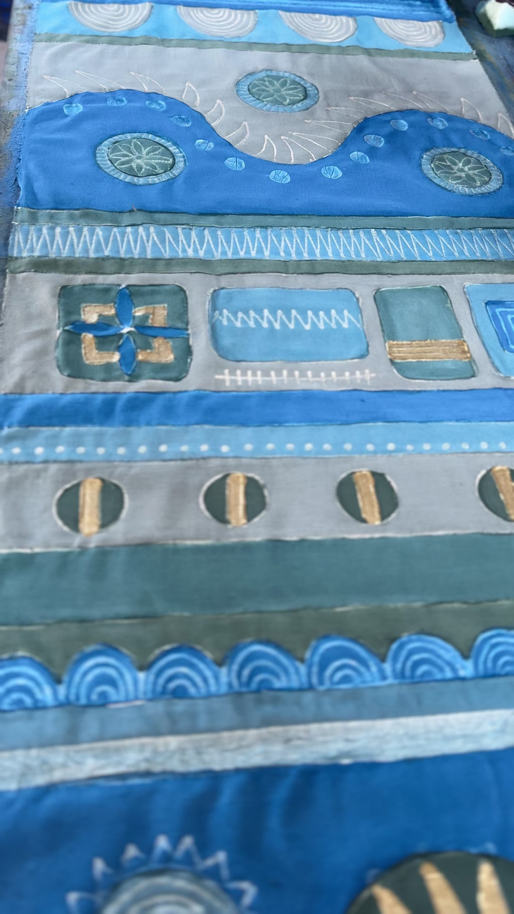 Mali Aqua Hills Table Runner - Hand-painted blue and green 100% cotton table runner.